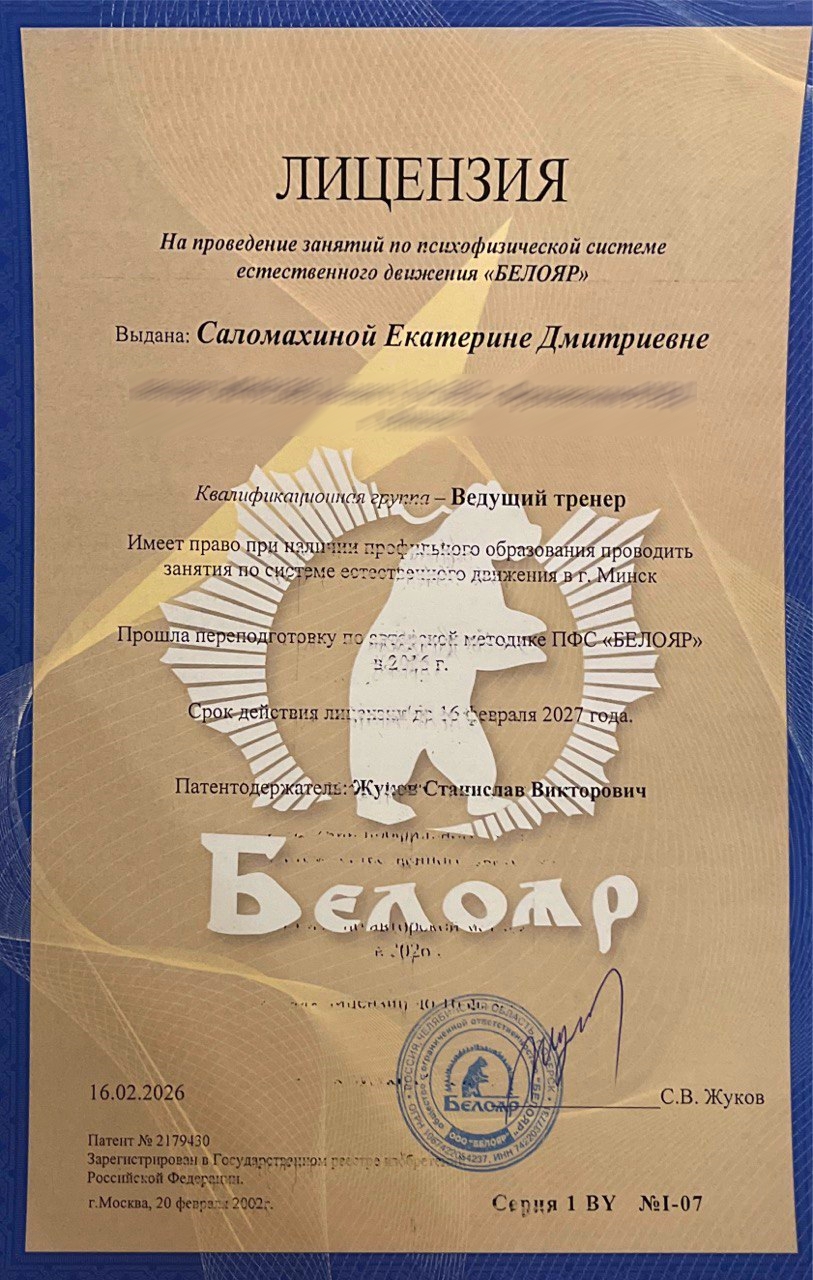 ООО «Белояр» не несет ответственность за квалификацию тренера по системе естественного движения с просроченной лицензией.