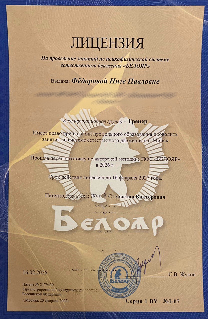 ООО «Белояр» не несет ответственность за квалификацию тренера по системе естественного движения с просроченной лицензией.